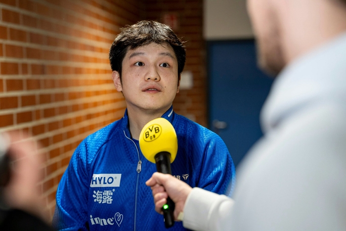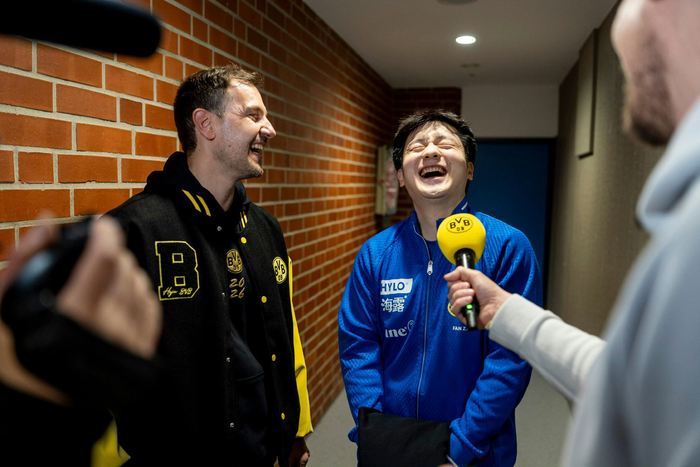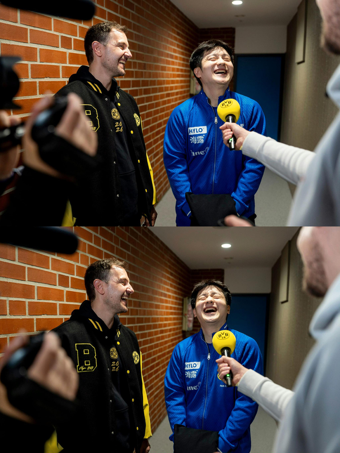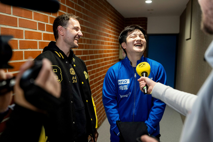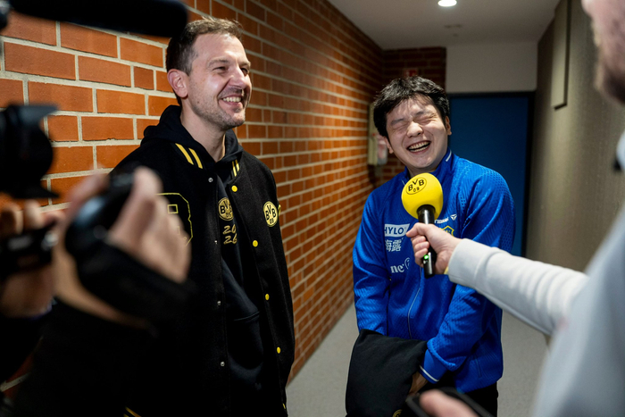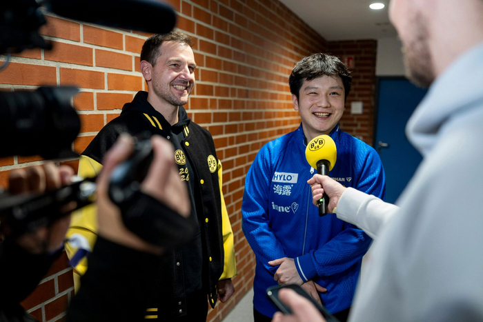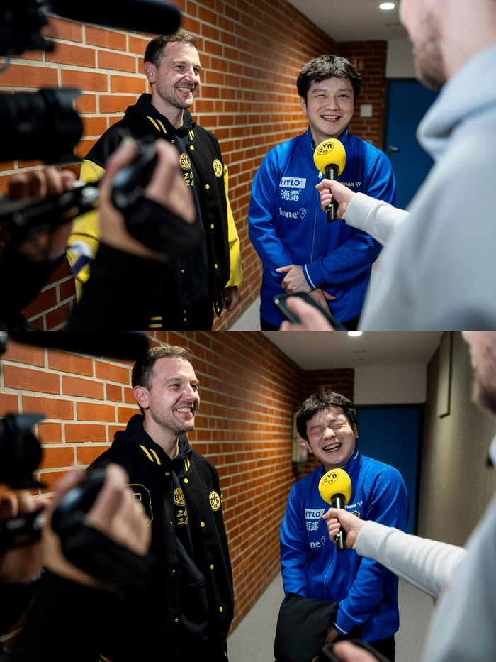 樊振东由于过于可爱成为首位穿蓝球衣能进多特蒙德更衣室的人